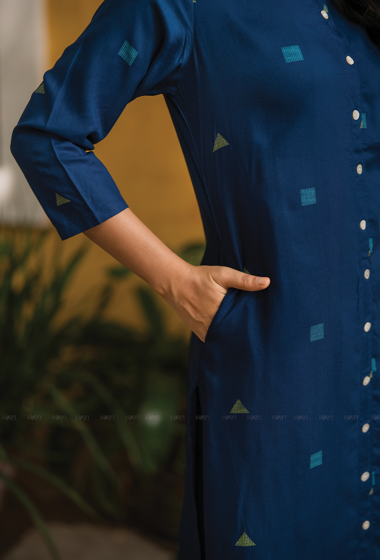 • Design: Straight cut kurta paired with tailored pants for a polished silhouette