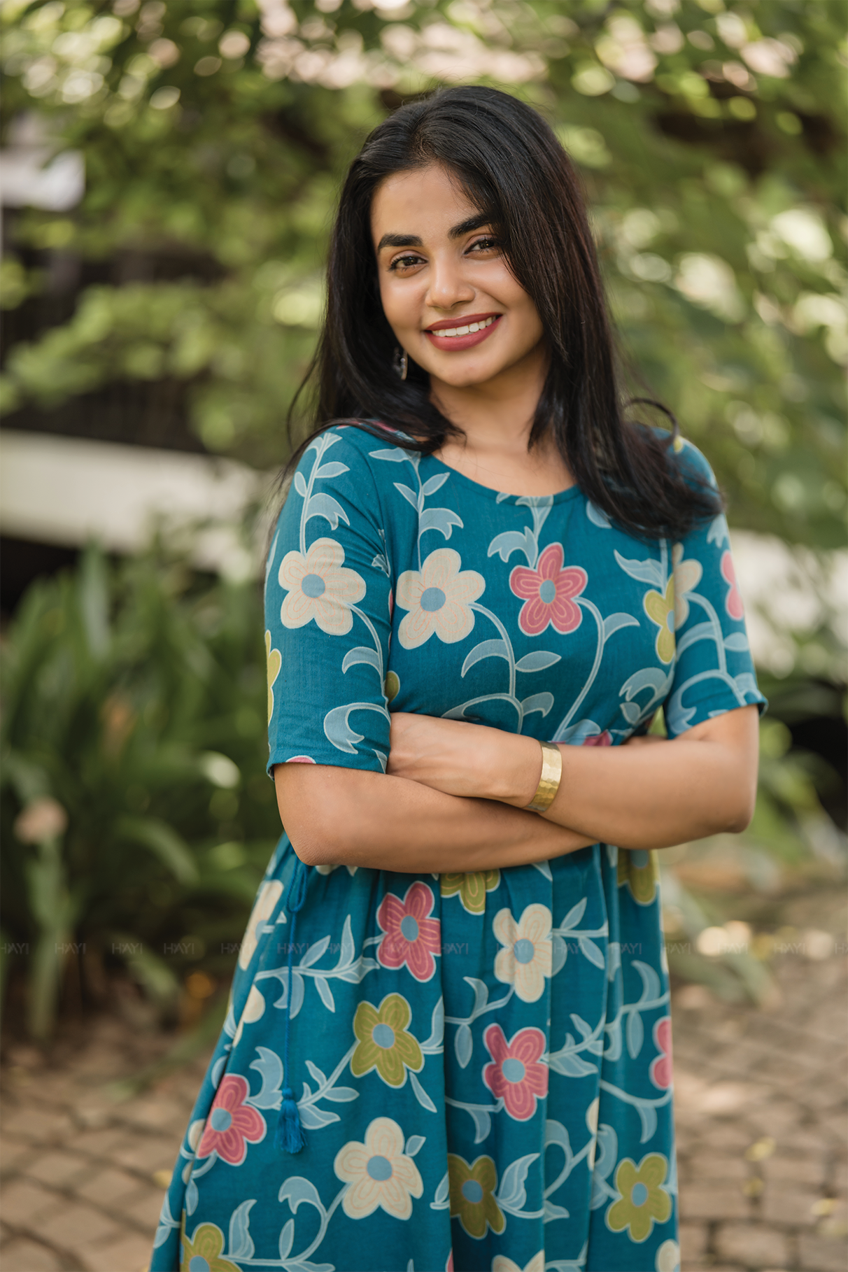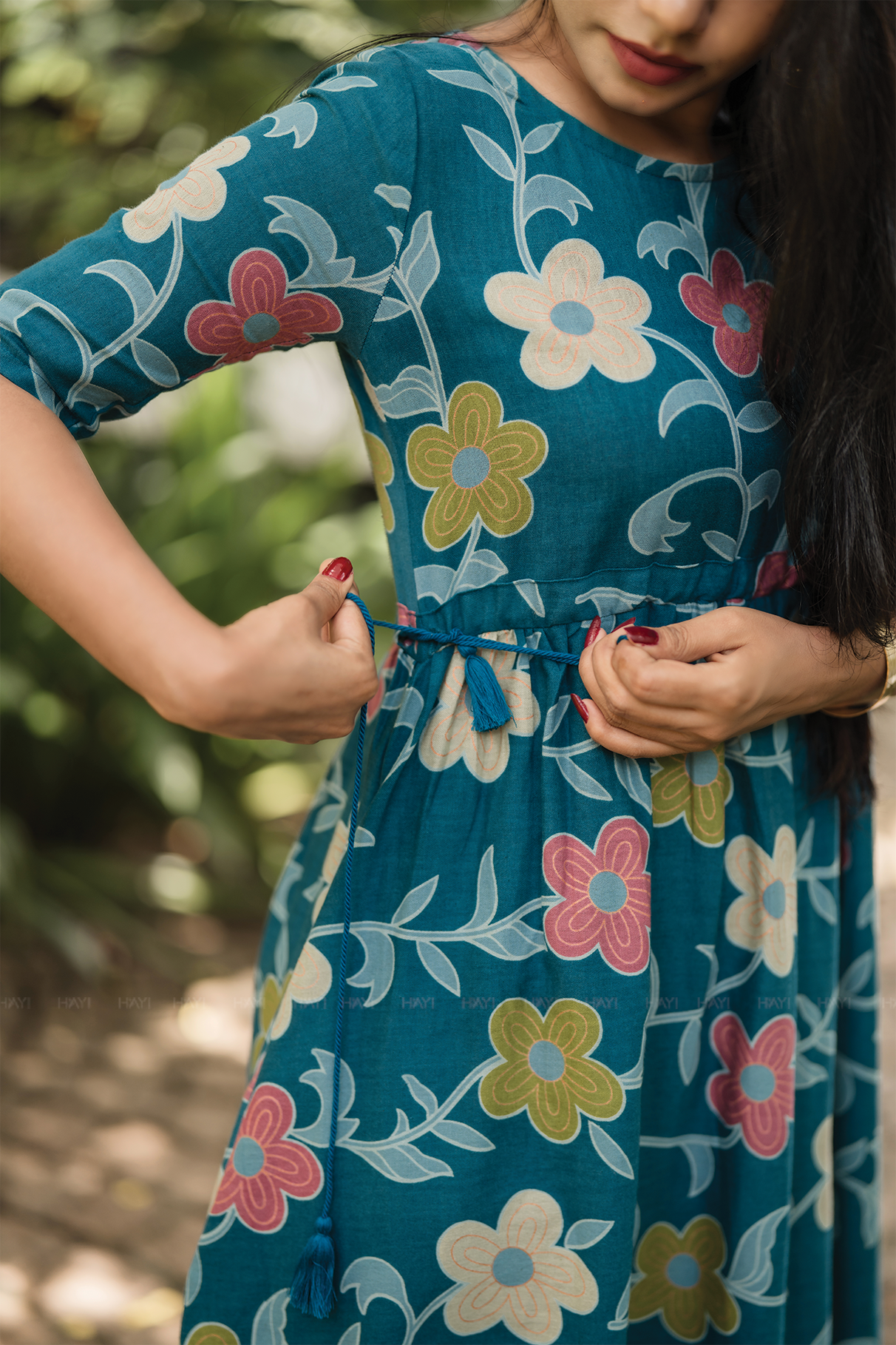 Playful yet sophisticated, the Tassel Chic Dress is designed to brighten your day. With bold floral prints and tassel rope detailing, this blue cotton dress offers comfort with a twist of fun.