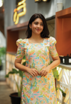 Brighten your everyday style with this cheerful floral pastel yellow kurta – a perfect blend of playful charm and feminine elegance.