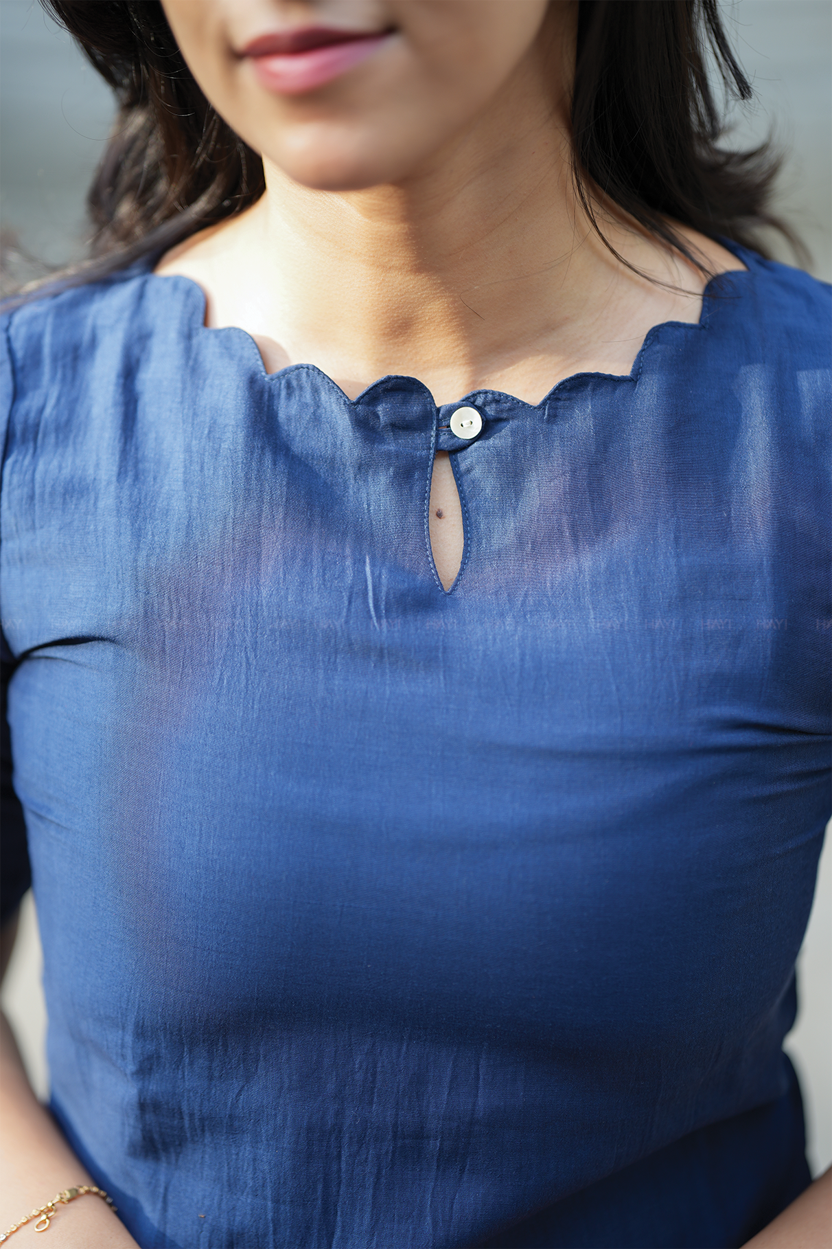• Neckline: Scallop neck with keyhole detail for a chic touch