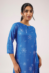 • Color: Bright cobalt blue with delicate white tribal-inspired motifs including palms, elephants, and hearts